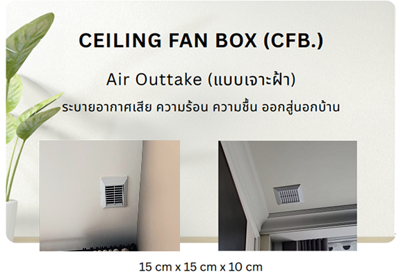 เหมาะสำหรับบ้านที่มีฝ้าหลุมหรือฝ้าเรียบ เน้นการระบายอากาศสะสมด้านบน